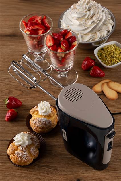 Batidora eléctrica multifuncional que acorta el tiempo de procesamiento y mejora la homogeneidad de los ingredientes. Gracias a los 5 niveles de velocidad y la función turbo, puedes decidir por ti mismo cómo mezclar tus ingredientes para obtener una masa suave y fácil de procesar. Es perfecta para la preparación rápida y fácil de recetas dulces y saladas, gracias a sus 2 varillas eléctricas: una para batir y otra para amasar. Puede preparar masas para pasteles, pan, pizza, crema batida y mucho más.