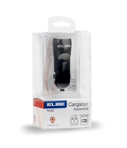 CARG-201-N CARGADOR AUTOMÓVIL 2 PUERTOS 3,1A + 1A | ELBE