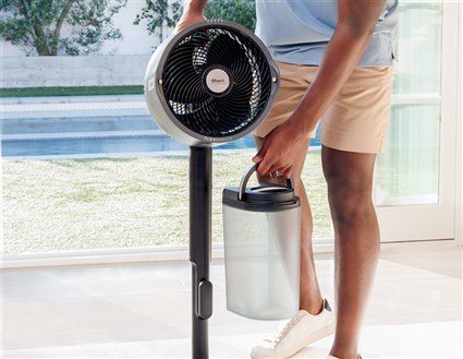 Shark FlexBreeze Pro Mist es fácil de transportar y proporciona frescor fácilmente en cualquier lugar. Gracias al depósito MistPro integrado, portátil y desmontable de Shark, puedes nebulizar en exteriores (tanto en el modo de pie como en el de sobremesa), sin tener que usar una manguera o un cubo de agua, lo que lo hace perfecto para las tardes de verano en el parque o para una jornada escolar deportiva en verano. Con agua helada, puedes bajar la temperatura hasta 6°C1. Personaliza tu ventilación con cinco velocidades y dos modos de SmartBreeze (brisa inteligente) que simulan patrones de brisa natural e intermitente para disfrutar en el interior de un flujo de aire refrescante como el del exterior. Con un alcance de hasta 20 metros, 180 grados de oscilación y 55 grados de inclinación hacia arriba y hacia abajo, todos podrán disfrutar de la brisa. Diseñado para soportar los elementos, la resistencia UV3 de Shark FlexBreeze Pro Mist y el diseño hermético, lo hacen perfecto para usar en exteriores, llueva o brille el sol. En interiores, su funcionamiento silencioso hace que sea ideal para usarlo mientras duermes, trabajas o te relajas.