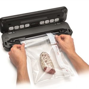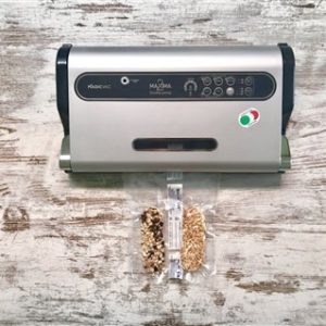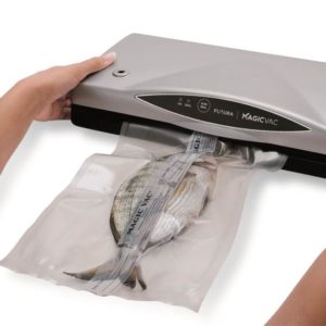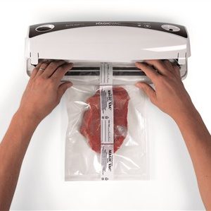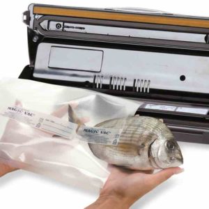 Las máquinas MAGIC VAC®, además del excepcional rendimiento y la flexibilidad de la selección de los métodos de envasado al vacío a realizar, ofrecen un alto uso intuitivo que se traduce en un ahorro considerable de tiempo durante las fases de envasado al vacío. Al almacenar los alimentos al vacío (lo que significa que no hay aire), la vida de los alimentos se prolonga considerablemente, ya sea que se almacene en la despensa, el refrigerador o el congelador. El aire puede hacer que los alimentos se vuelvan rancios, mientras que el envasado al vacío mantiene la frescura más larga y el sabor de los alimentos. Ahora tendrá la oportunidad de envasar alimentos frescos en porciones convenientes para su uso futuro, incluso en grandes cantidades.
