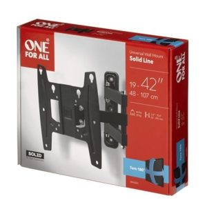 Ideal para una habitación o estancia que requiera una visualización de la TV desde cualquier punto. El soporte de pared ELBE SP-1342-A está diseñado para soportar una televisión entre 13’’ y 42”. Compatible VESA 50×50, 75×75, 100×100, 150×150 o 200×200, soporte articulado con un ángulo de giro de ±90° y una inclinación de hasta 10º para colocar en lugares elevados y así ofrecer una visibilidad total de la pantalla. Acabado en color negro. El soporte ELBE es capaz de soportar televisores de hasta 15 Kg de peso. Dispone de tornillos de sujeción y manual de instrucciones detallado para su montaje.