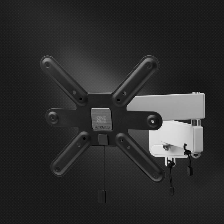 La Línea Ultra Slim se caracteriza por su diseño discreto, ingeniería inteligente y de alta calidad con materiales duraderos. La gestión de cables está incorporada en este soporte de TV, garantizando una óptima organización de los cables. No precisa ayuda de más manos que las suyas. Sencillamente haga clic en el soporte del televisor con bloqueo integrado y mecanismo de liberación. En caso de que tenga que quitar el televisor de la pared, simplemente desbloquee y libere. Para asegurar que su televisor se cuelga correctamente, un nivelador de burbuja está incluído en la caja. La app de instación de One for All, contiene herramientas útiles, incluyendo un indicador de altura, videos de instalación y manuales digitales.