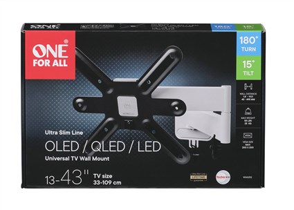 La Línea Ultra Slim se caracteriza por su diseño discreto, ingeniería inteligente y de alta calidad con materiales duraderos. Sencillamente haga clic en el soporte del televisor con bloqueo integrado y mecanismo de liberación. El nivel del soporte se puede ajustar con un destornillador después de la instalación. Puede estar siempre seguro de que su televisor esté recto. Para asegurar que su televisor se cuelga correctamente, un nivelador de burbuja está incluido en la caja. La app de instación de One for All, contiene herramientas útiles, incluyendo un indicador de altura, videos de instalación y manuales digitales.